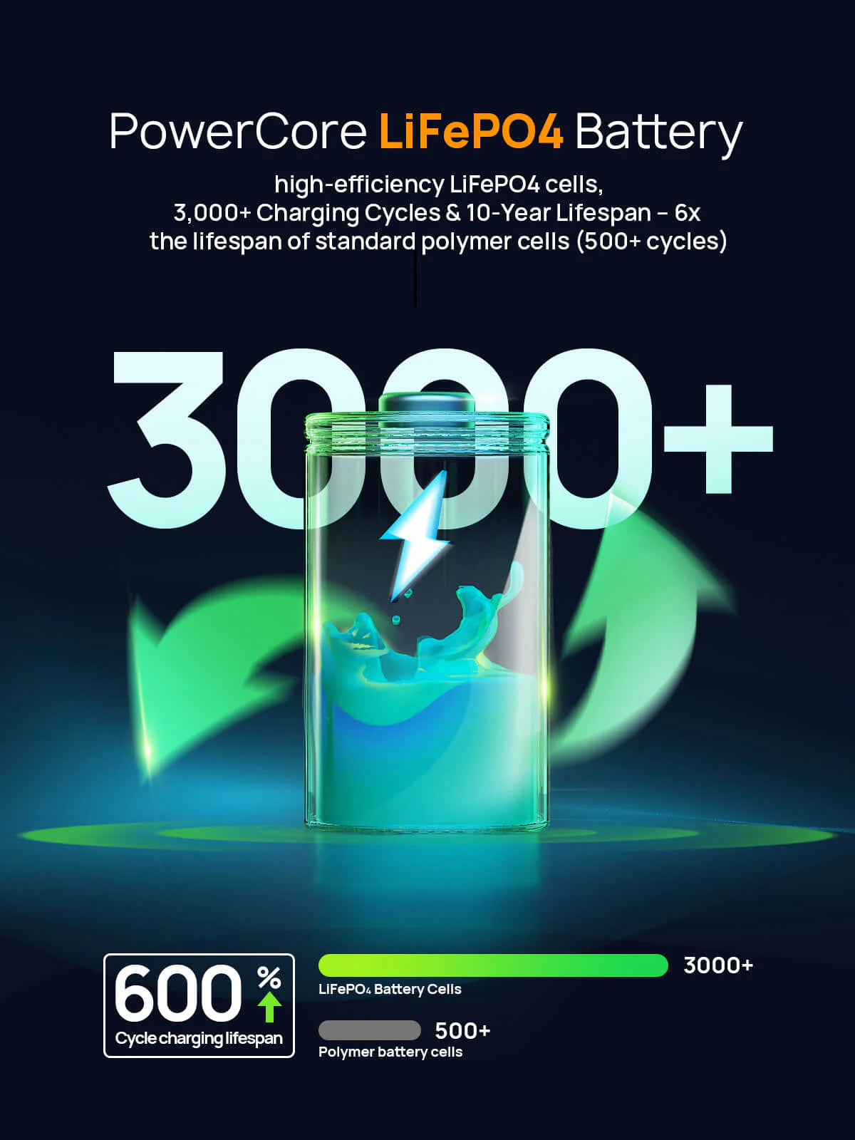 With 2000W AC output, it runs most household devices and tools without breaking a sweat. The advanced LiFePo4 batteries deliver outstanding durability, keeping 80% capacity even after 3500 charging cycles.