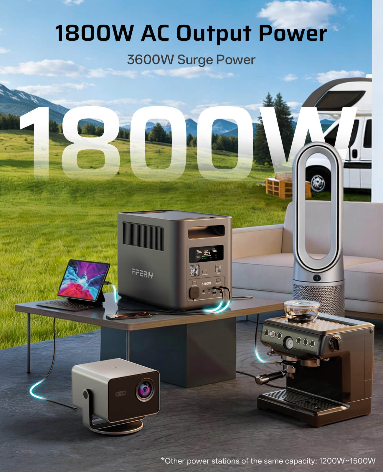 1800W rated AC output | 230V / 50Hz power standard | Compatible with UK plug devices (Type G)