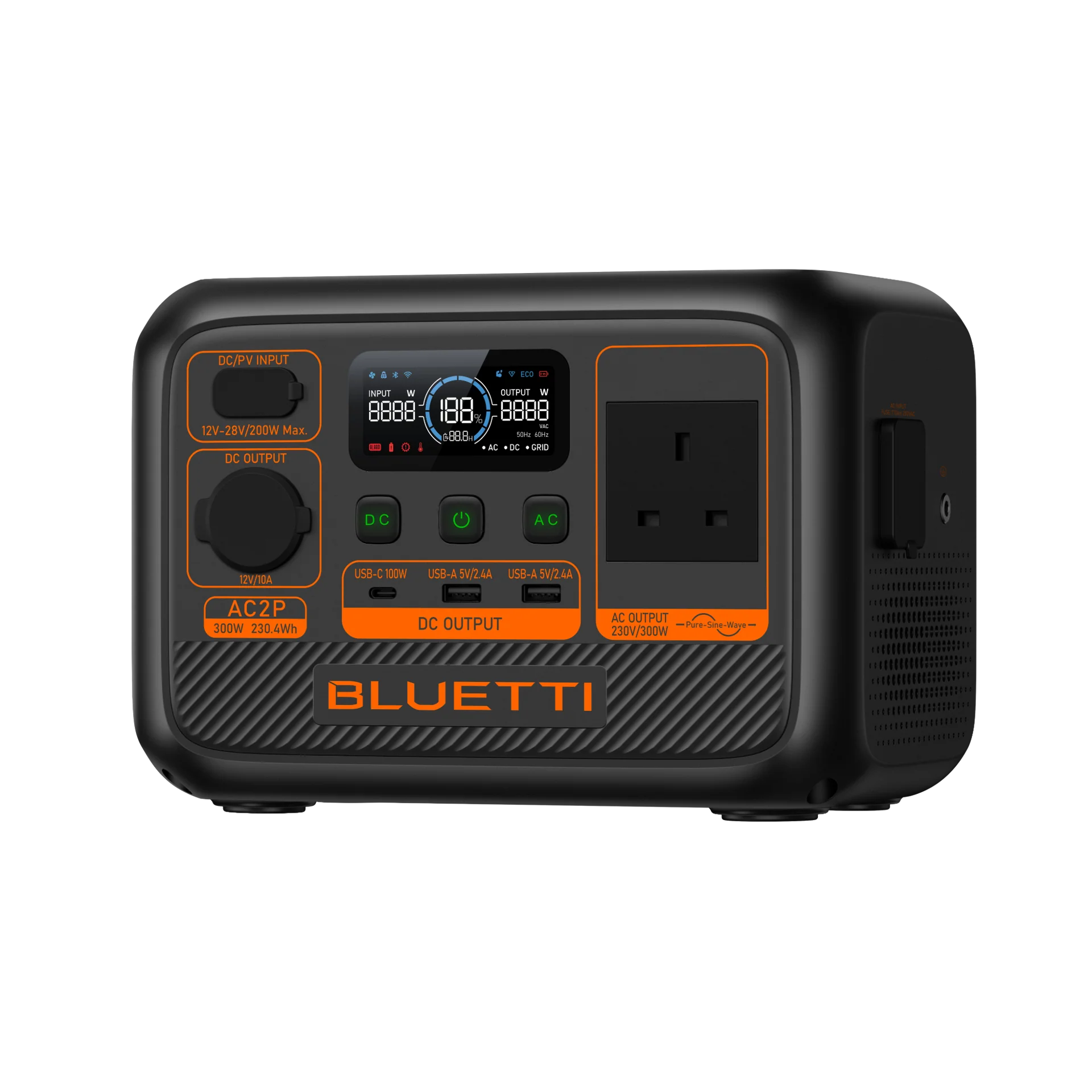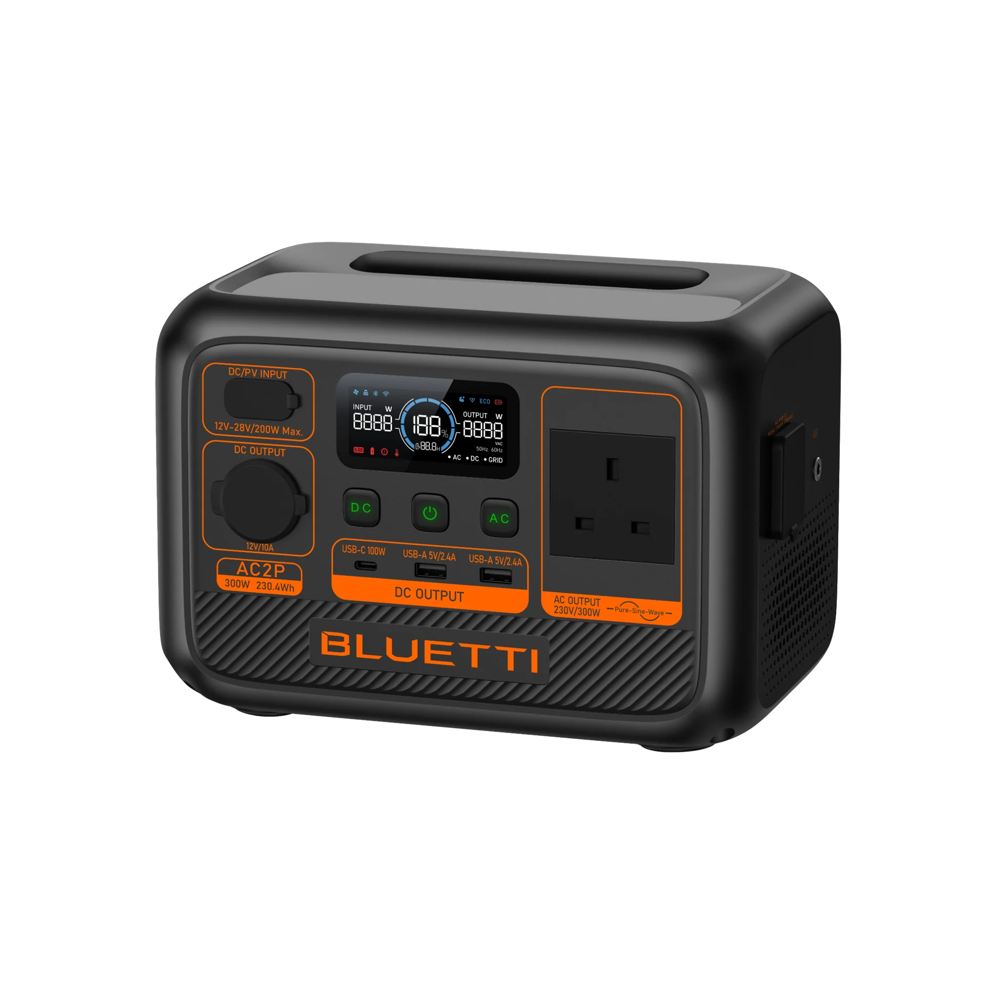 BLUETTI AC2P is an extraordinarily lightweight and user-friendly energy storage solution. With a 230Wh capacity and 300W power output, it can cover most power needs of essential devices. Charging to 80% capacity in just 45 minutes, making it the perfect companion for outdoor activities, emergency relief, RV travel, and more.