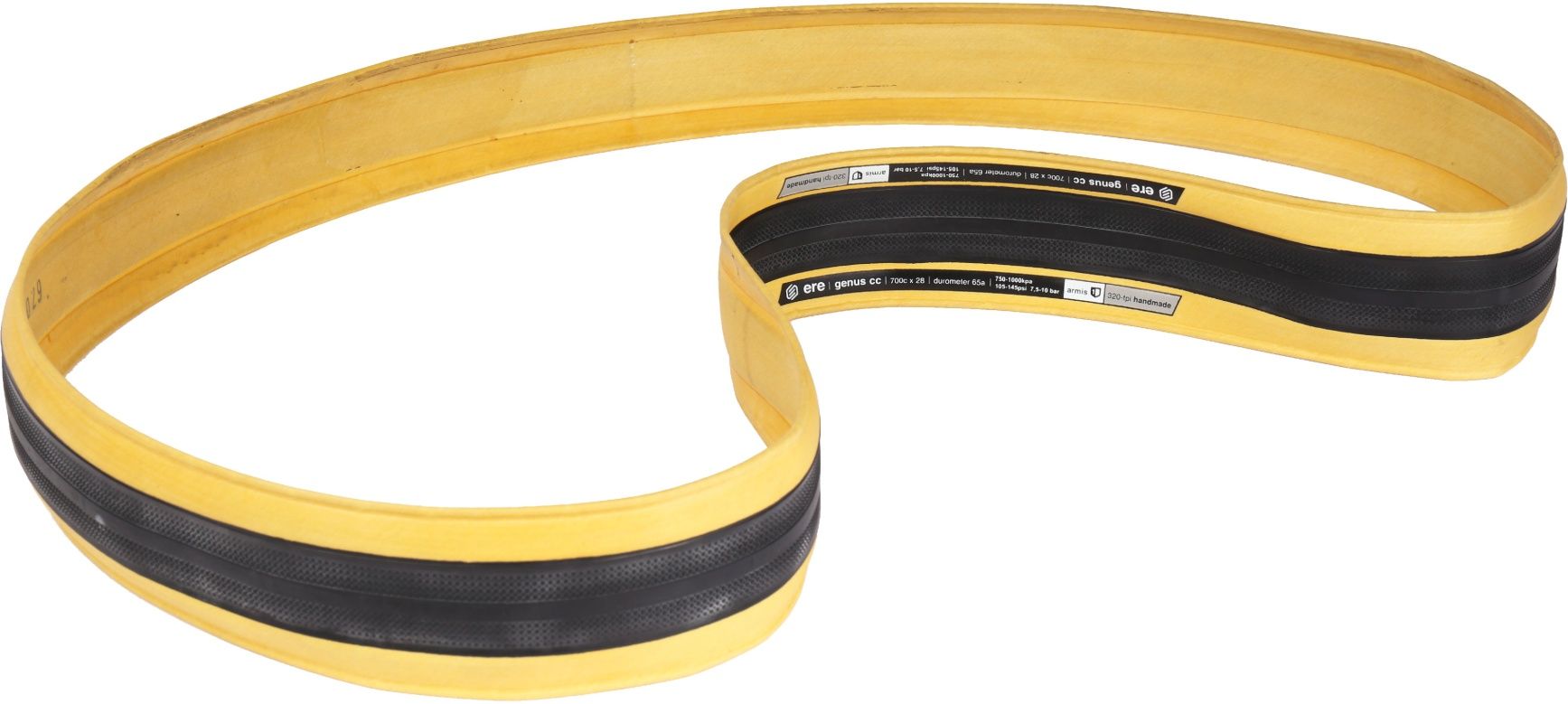 Handmade ERE Genus CC Cotton Clincher 320 TPI road tire in 700x28C with Skinwall sides.