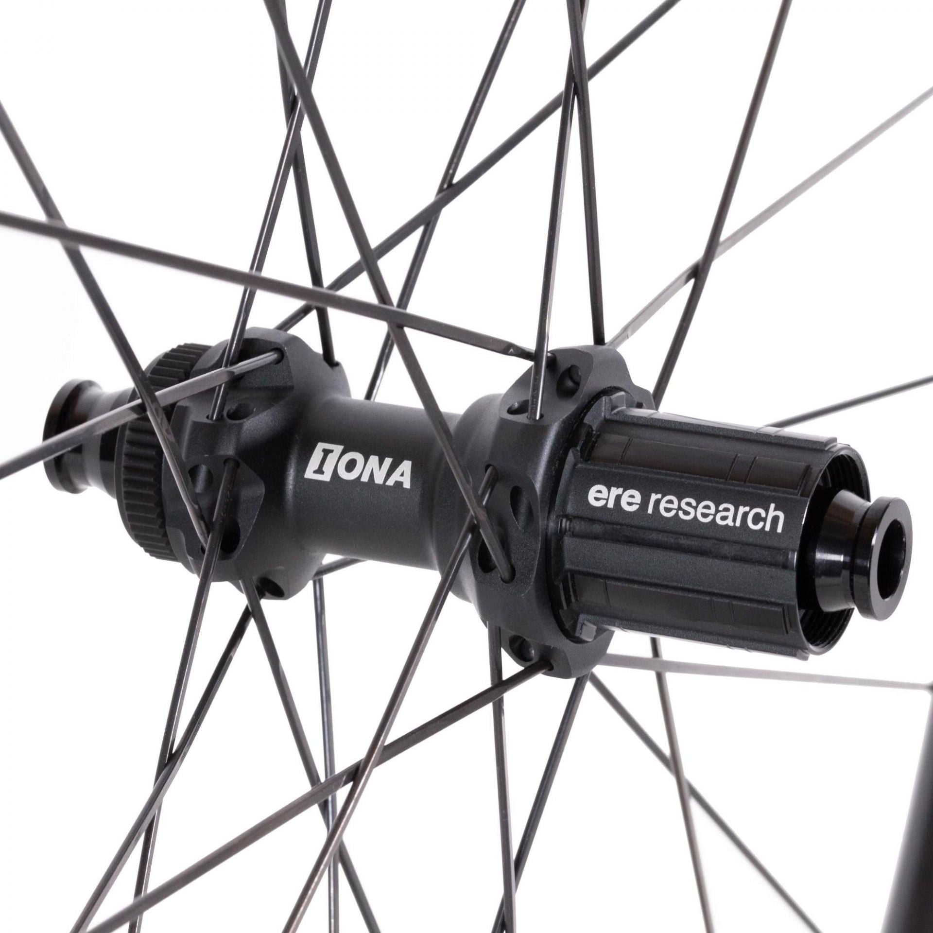 Ere Research Iona hubs are a 100% in-house manufactured design. The hubs are bulletproof and will practically run forever when properly taken care of. The straight-pull hubset has a low profile and a sturdy design. Its angled flange supports the directional torque going through the hub body, so it can take any beating.
