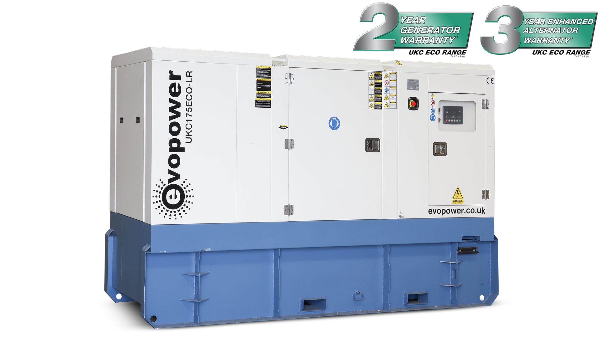 For UK based installations, our Cummins powered ECO range of three phase diesel generators have a warranty up to 24 months / 1,000 hours for standby applications or up to 12 months / 2,000 hours for prime applications. The Genpower alternator fitted to our UKCXXXECO range carries a 3 Year warranty.
