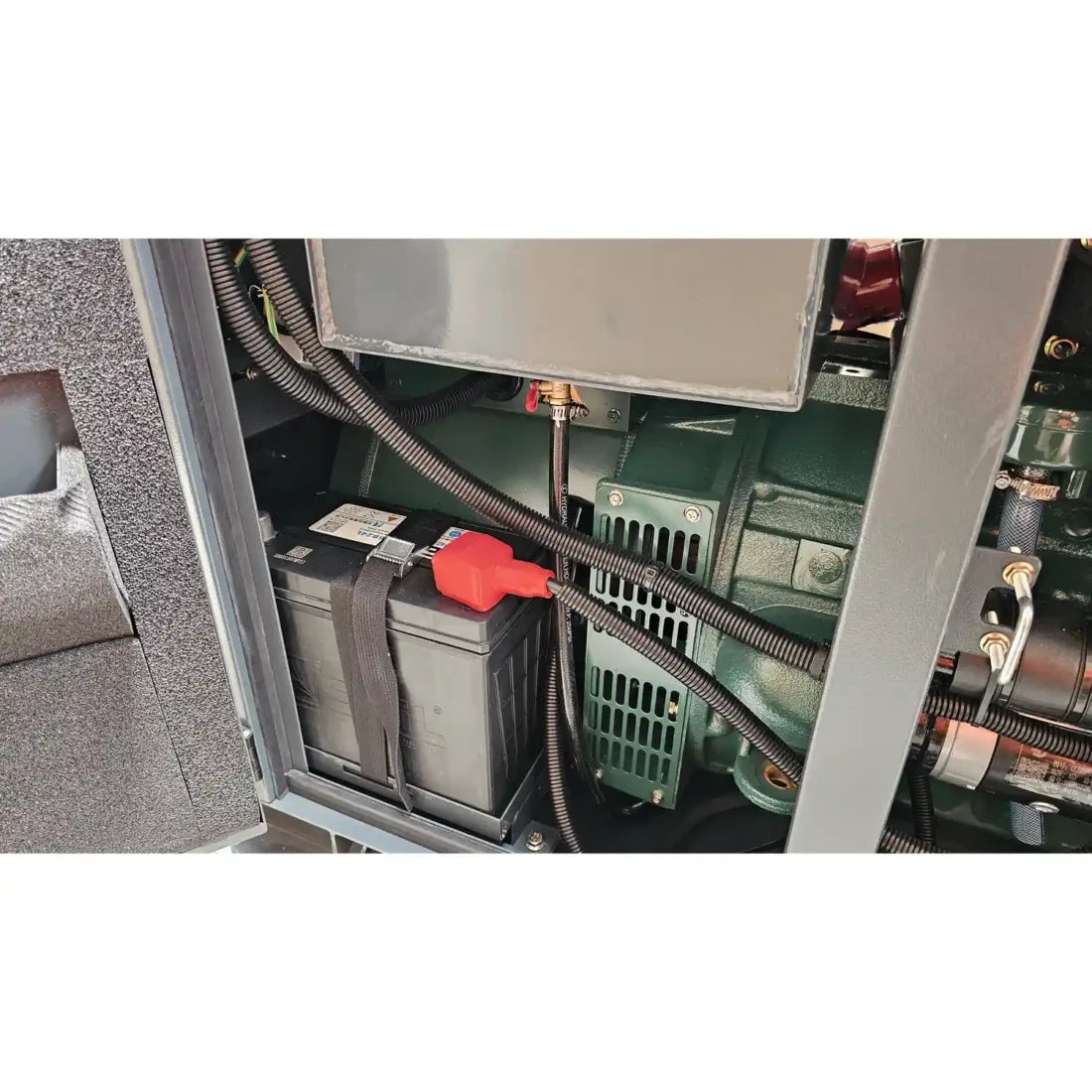Coupled to the engine is a Depco alternator, a high-quality component designed for efficient energy conversion and reliable electrical output. The alternator’s construction ensures optimal performance, delivering stable power to your equipment. Mounted on anti-vibration mounts, this setup effectively dampens operational vibrations, which not only protects the generator’s components but also enhances its operational life by reducing wear and tear.