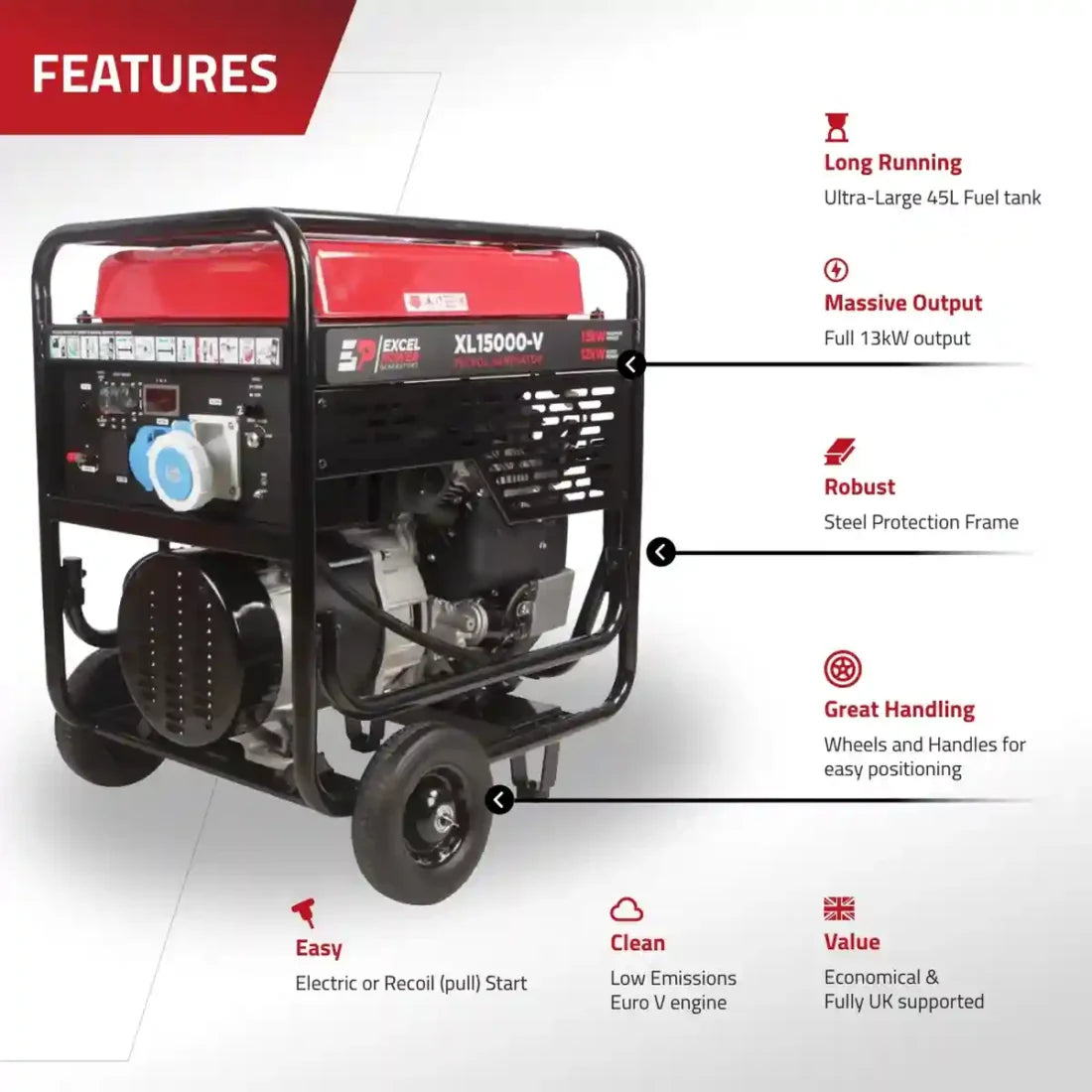 The Excel Power XL15000V 13kW Petrol Generator Unleashing 13kW Output