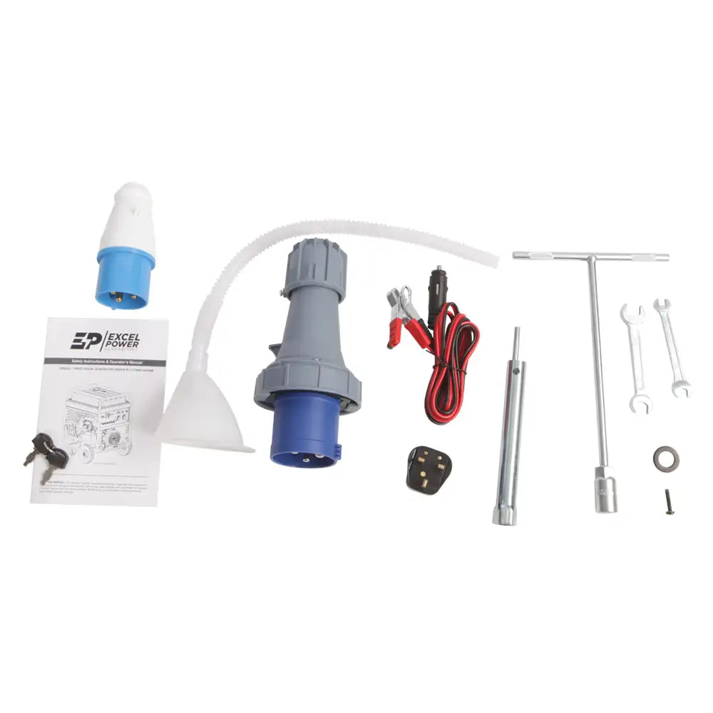 Here is what you get; 1 x Excel Power XL15000V generator, 1 x user manual plus tool kit, 12VDC to clamp leads and some spare plugs. Also, the XL15000V 13kW petrol generator is covered by a 2 year warranty for peace of mind.