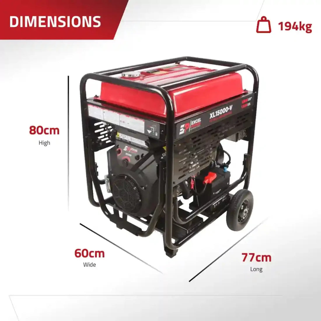 The XL15000V is not just a static powerhouse; it is designed for versatility and ease of use. Equipped with robust wheels and handles, this open-framed petrol generator is a breeze to maneuver. Whether you need to transport it across uneven terrain on a construction site or roll it out for emergency power in diverse locations, the Excel Power XL15000V ensures that mobility is never a challenge.