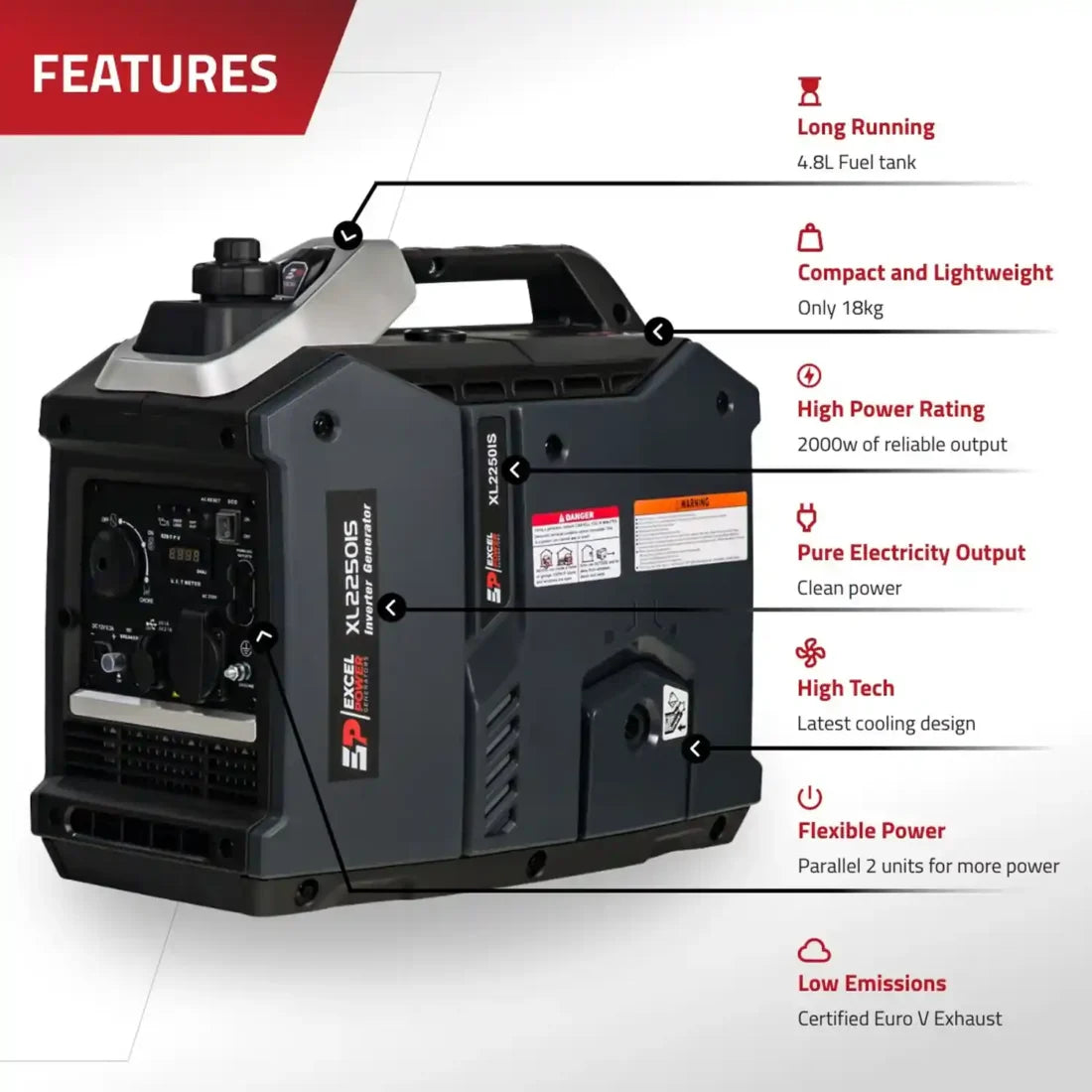 The Excel Power XL2250iS 2kW Inverter Generator.