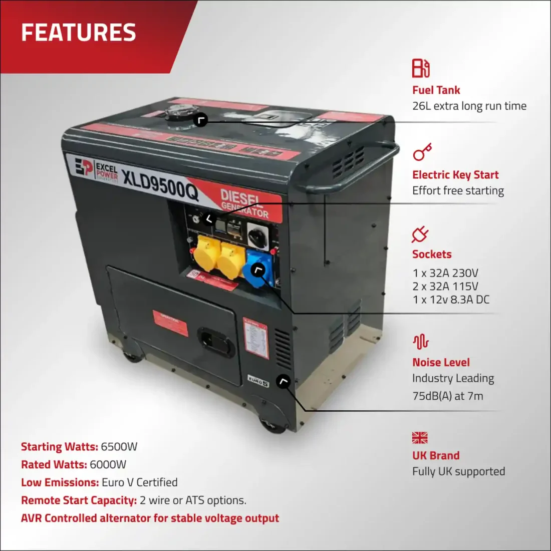 Equipped with an AVR alternator, the power produced by the Excel Power XLD9500Q is safe to use with electronic equipment like PC’s, laptops TVs plus more besides.