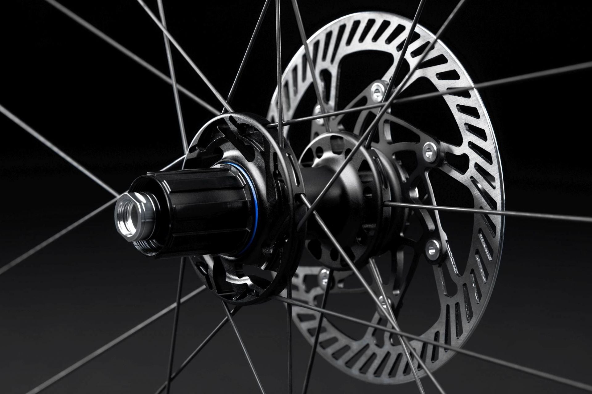 • Newly designed hubs: CNC-machined aluminum with AFS (Centerlock) rotor interface