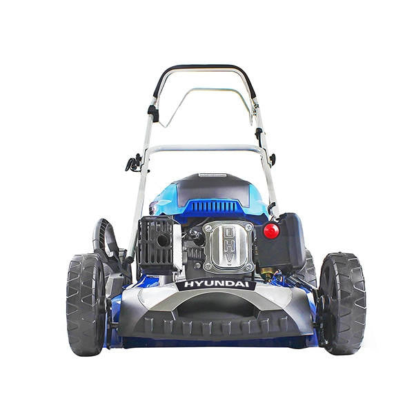 The HYM510SPE is a petrol self-propelled lawn mower from Hyundai with electric push-button start. With a powerful Hyundai IC175VE 196cc engine with low fuel consumption, it is ideal for medium to large-sized lawns.