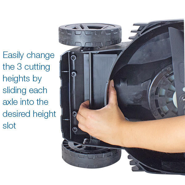 For the perfect, tailored cut on your lawn, the HYM40LI330P can be easily adjusted between its 3 different cutting heights - ranging from 20mm for a super smooth lawn to a 60mm option if you’re trimming rougher ground or doing a first cut - by using a single height adjusting lever, giving you complete control over your lawn care needs.