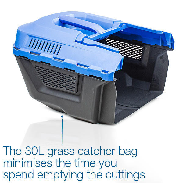 The HYM40LI330P's spacious 30L grass collector bag, featuring a high airflow and hard lid, ensures that you'll spend less time having to empty the cuttings and thus reducing your overall mowing time.