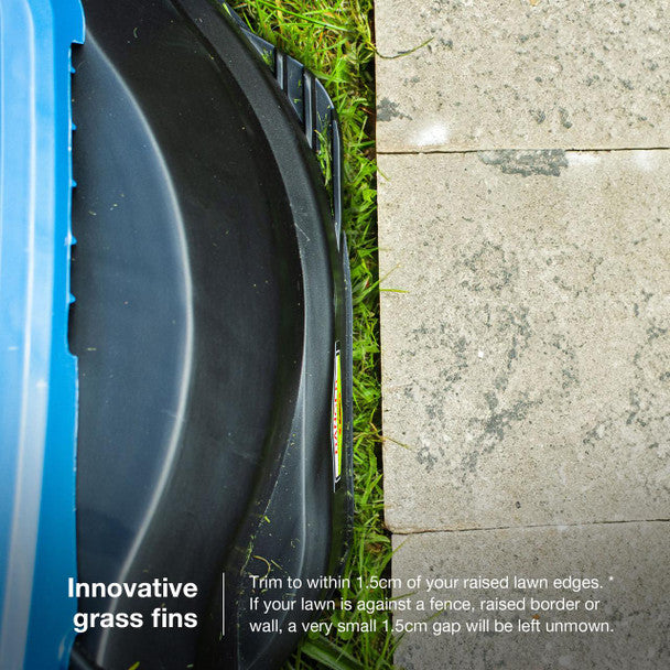 Trim to within 1.5cm of your raised lawn edges with our innovative grass fins! Our lawn mower catches stray blades of grass, saving you time on the painstaking task of tidying your lawn edges with a trimmer.