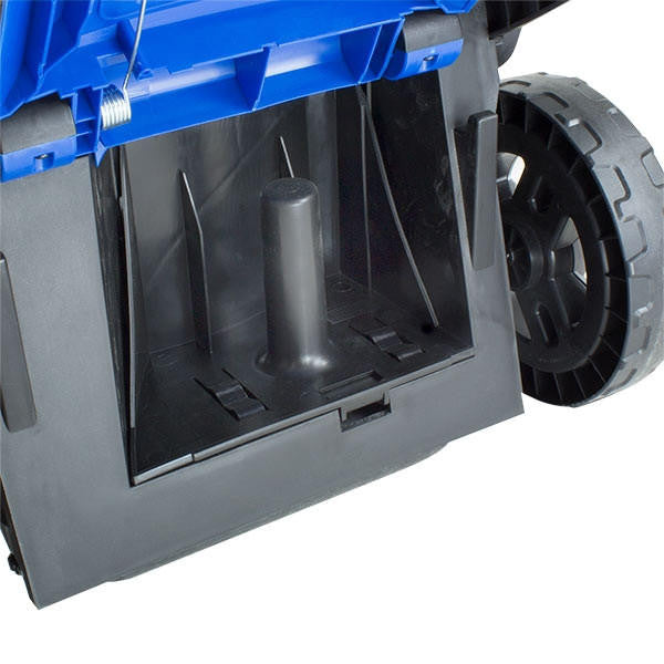 This lawn mower is so compact to store and transport. Thanks to its clever design, its handles fold down over the main power unit, which saves space in your garden shed or garage. It also features upright legs for a compact vertical storage solution when space is limited.