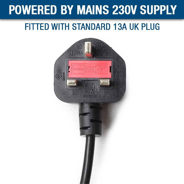 Fitted with Euro quick release connectors this compressor is fitted with a standard 13A UK Plug.