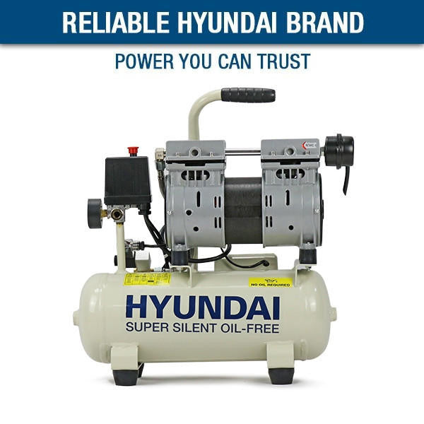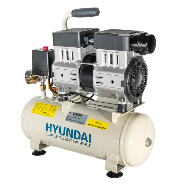 The HY5508X is a powerful yet compact 550w direct-drive oil-free low noise, near silent 8 litre air compressor from Hyundai.