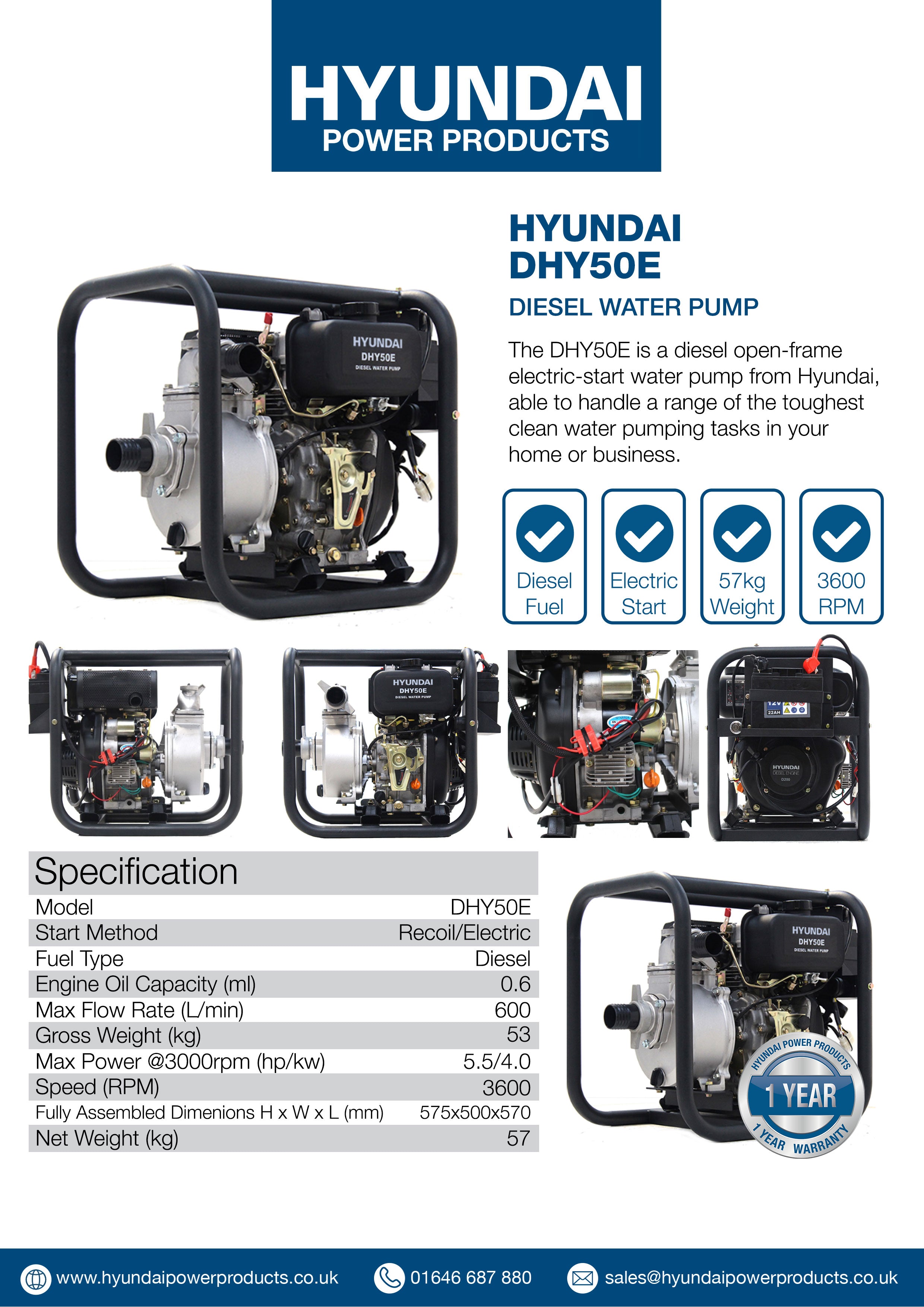 This open-frame water pump comes with our 1 year Hyundai warranty for added peace of mind.