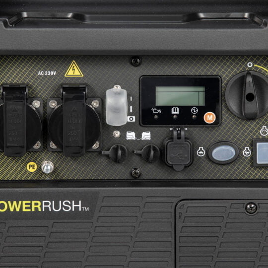 Digital Display: Outputting energy (indicator light – Green), Overloading and Oil alarming (indicators light – Red), Voltmeter / Hourmeter
