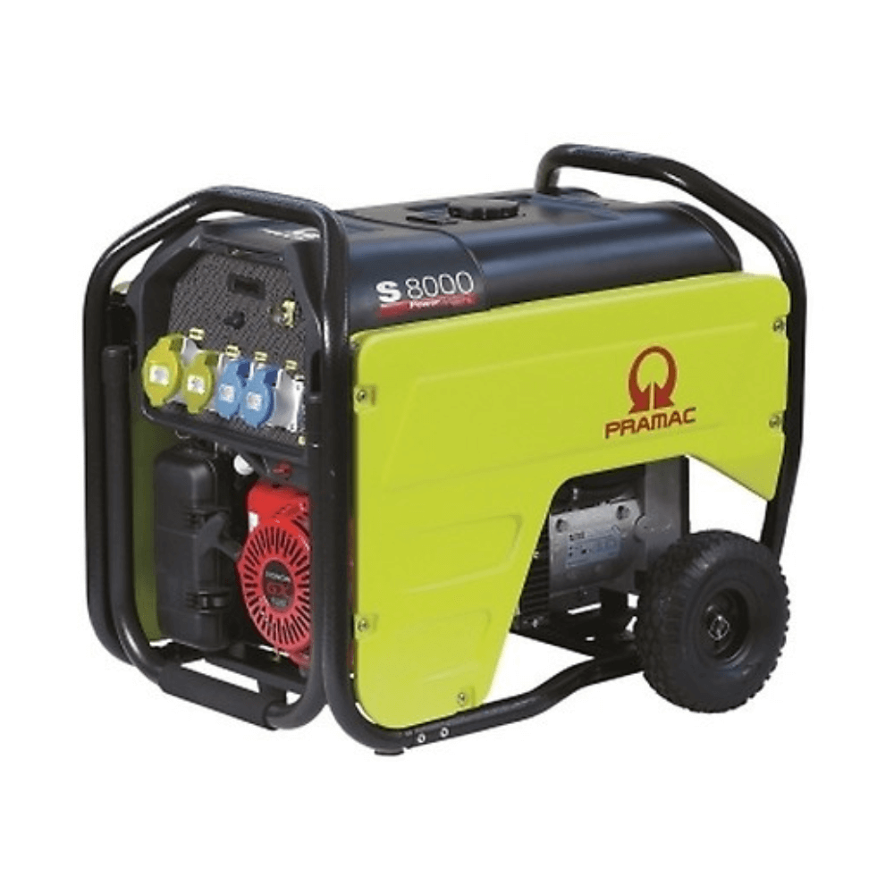 Pramac S8000: Built for professional and intensive use, it is a powerful and robust generator. With its strong and compact frame, the S8000 is ready to move where power is needed and configured.