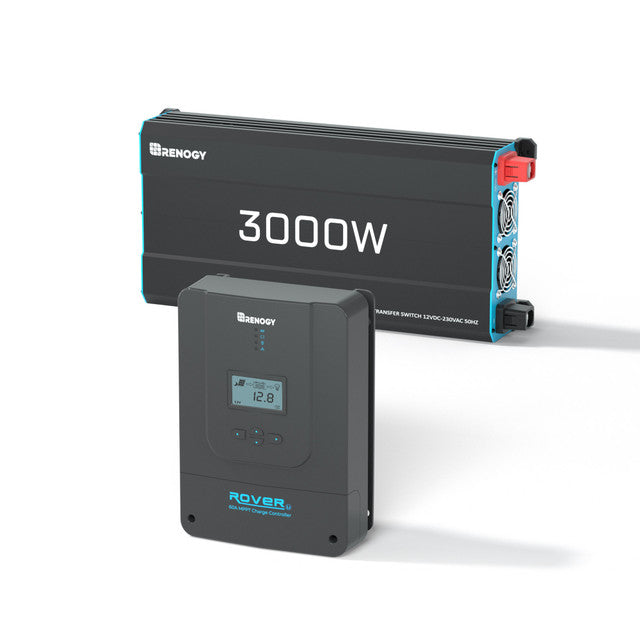 The Renogy 3000W Pure Sine Wave Inverter (12V DC to 230V AC) delivers clean, stable power with 6000W surge capacity and more than 90% efficiency, ideal for motorhomes, campervans, solar systems, and off-grid homes. With <50ms automatic transfer switch (UPS), it ensures uninterrupted power for sensitive electronics. Quiet operation, 5-stage protection, and CE/RoHS certification offer safe, reliable use. Easy DIY installation, English standard socket.